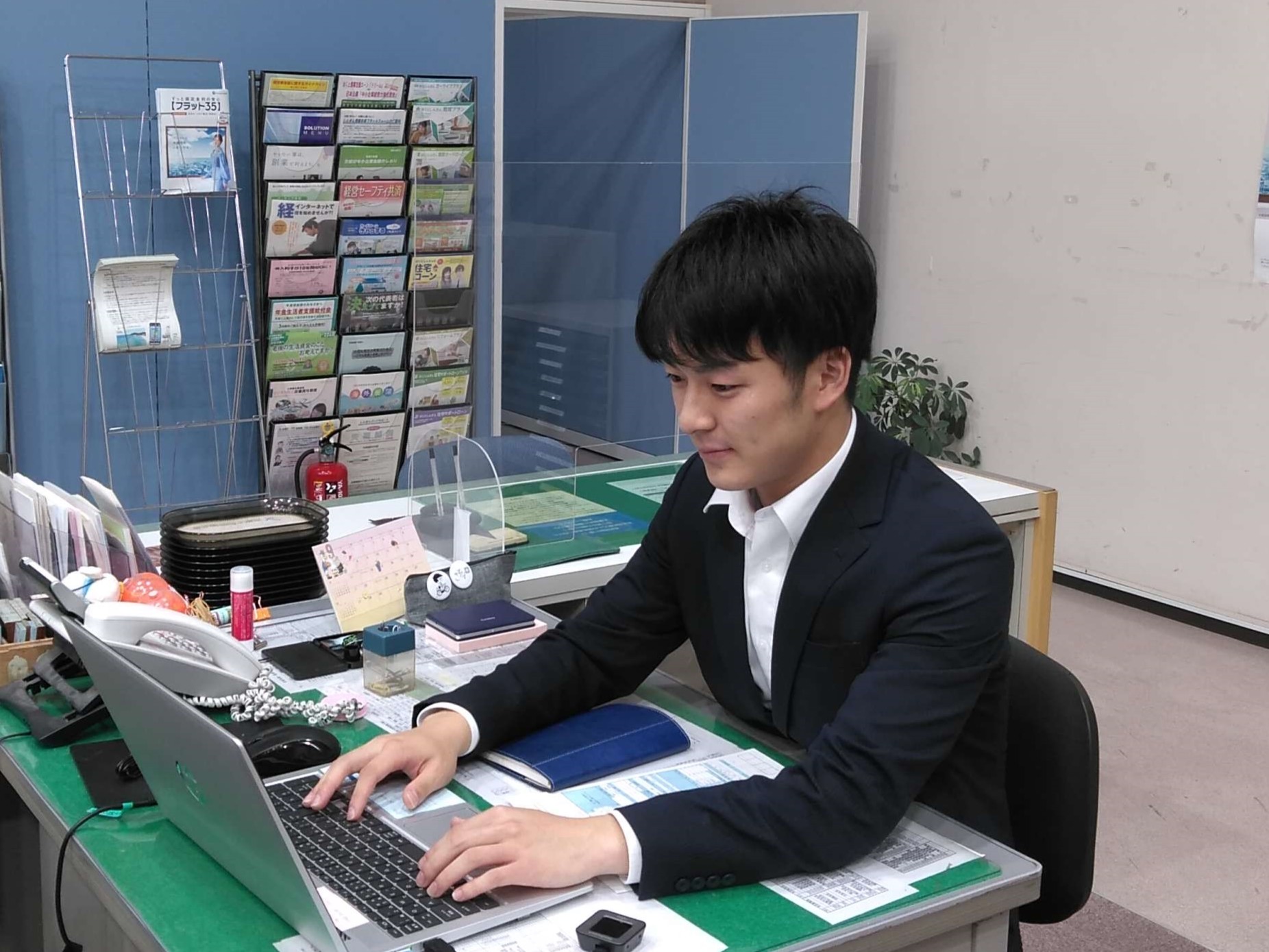 担当業務の説明:融資係として主に、窓口に相談に来られたお客様に融資の提案であったり手続きを行っています。